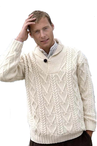The "V" neck shawl collar is the main feature of this Irish sweater