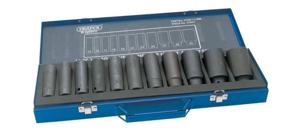 6 point deep sockets, 78mm long, forged from chrome vanadium steel hardened, tempered and chemically blacked for corrosion protection. Hole for accessory spring loaded ball. Packed in steel carrying case.